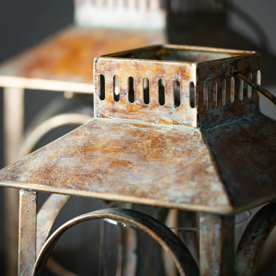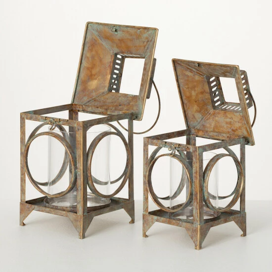 - Pair this beautiful set of 2 metal lanterns with your favorite real or LED candles. Place on any mantle, shelf or other surface to complete your space
