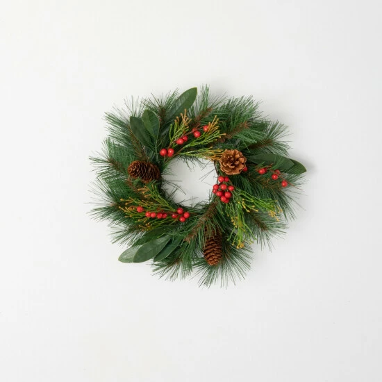 Pure & rustic, this pine collection features a burst of color with seasonal red berry accents. The subtle variation in color from browns to greens to reds, creates a look that is warm & inviting all season long. This mini wreath an ideal option for those who celebrate natural elements in their decor. Over the last 52 years, Sullivans has become an industry leader in home decorations. Our brand is rooted in tradition while incorporating modernized trends to keep your home looking up to date with timeless style. Here at Sullivans, we pride ourselves on creating product designs focused on quality and value, ensuring that our customers have access to beautiful products at reasonable price points.