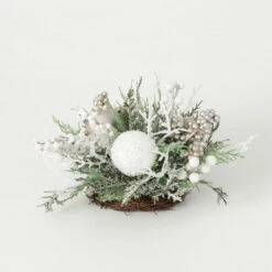 This wintery elegant flocked collection is iced with snow & accented with berries & bulbs. Designed with natural pine that has been frosted to coordinate exquisitely with silvery-white details, this orb will look amazing in your decor year after year. Over the last 52 years, Sullivans has become an industry leader in home decorations. Our brand is rooted in tradition while incorporating modernized trends to keep your home looking up to date with timeless style. Here at Sullivans, we pride ourselves on creating product designs focused on quality and value, ensuring that our customers have access to beautiful products at reasonable price points.