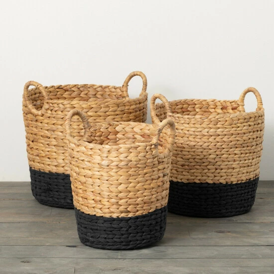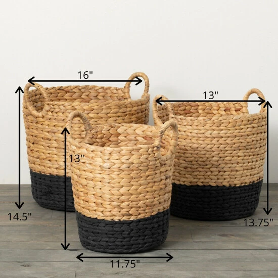 - Baskets measure 16″L x 15″W x 14.5″H; 13″L x 13″W x 13.75″H; 11.75″L x 11.25″W x 13″H
