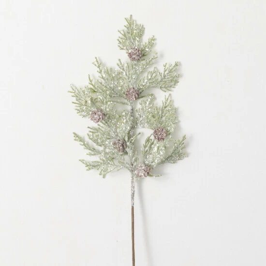 Jack Frost has arrived with this beautiful frosted pick. With soft green cedar accented with pinecones, this exclusive pick is the perfect final touch to any holiday decor. Over the last 52 years, Sullivans has become an industry leader in home decorations. Our brand is rooted in tradition while incorporating modernized trends to keep your home looking up to date with timeless style. Here at Sullivans, we pride ourselves on creating product designs focused on quality and value, ensuring that our customers have access to beautiful products at reasonable price points.