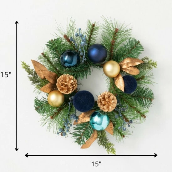 - Accentuate your space with this 15″ artificial ornamental pine mini wreath