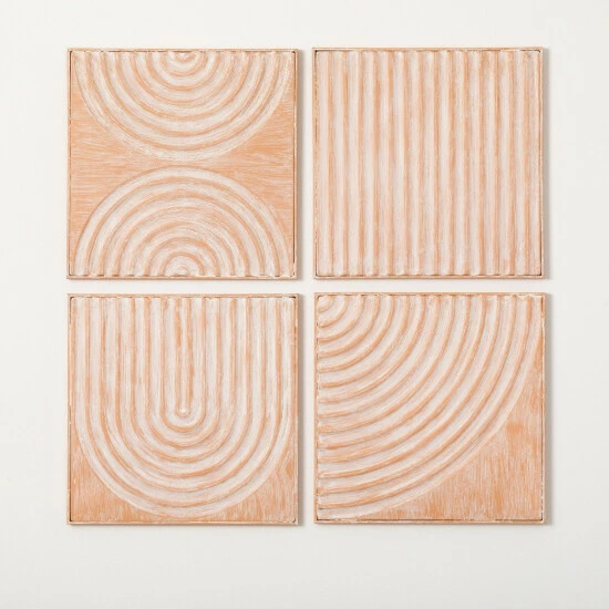 A hint of modern is all you need to take your space from simple to stunning and this unique assortment will add posh style to your walls. A standout focal point, each of the four square panels brandish their own geometric pattern and resemble terracotta with a weathered rubbed finish. Over the last 55 years, Sullivans has become an industry leader in home decorations. Our brand is rooted in tradition while incorporating modernized trends to keep your home looking up to date with timeless style. Here at Sullivans, we pride ourselves on creating product designs focused on quality and value, ensuring that our customers have access to beautiful products at reasonable price points.
