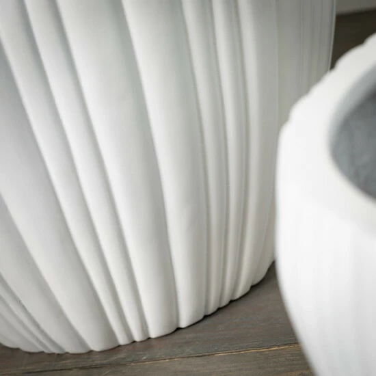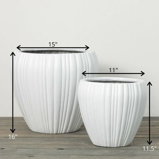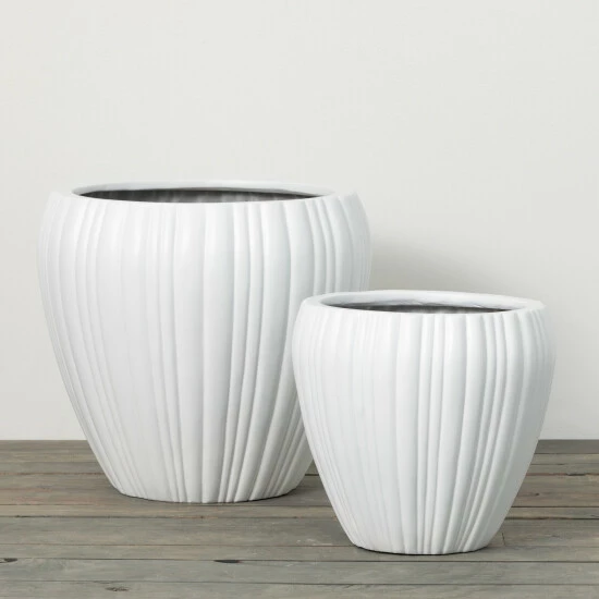 Modern lines surround this crisp white tapered round planter set, creating a rippled look on this fluted silhouette. The perfect contrast to vibrant, lush greenery, each of the pair keeps surfaces protected with accompanying drainage holes with plugs. Over the last 55 years, Sullivans has become an industry leader in home decorations. Our brand is rooted in tradition while incorporating modernized trends to keep your home looking up to date with timeless style. Here at Sullivans, we pride ourselves on creating product designs focused on quality and value, ensuring that our customers have access to beautiful products at reasonable price points.