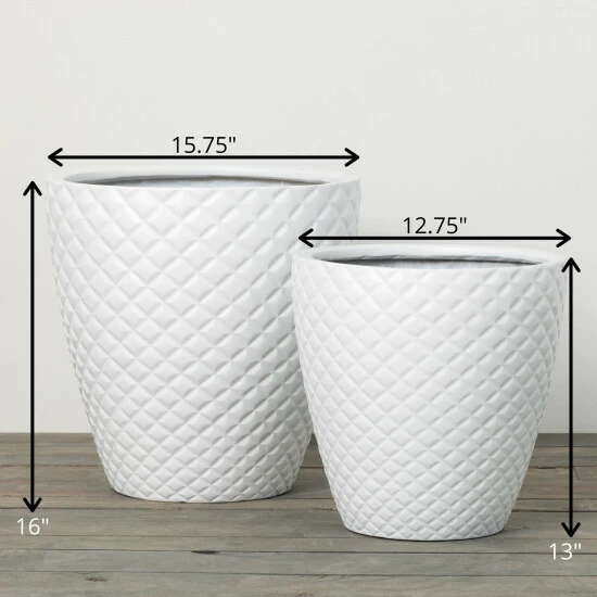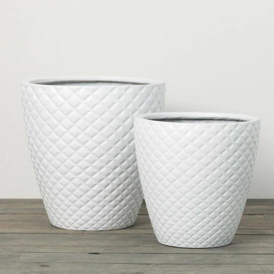 Gently fluted with a geometric textured surround, this set of crisp white vessels serve as the perfect backdrop to vibrant, lush greenery. Designed with the modern homeowner in mind, this pair also features drainage holes with rubber plugs. Over the last 55 years, Sullivans has become an industry leader in home decorations. Our brand is rooted in tradition while incorporating modernized trends to keep your home looking up to date with timeless style. Here at Sullivans, we pride ourselves on creating product designs focused on quality and value, ensuring that our customers have access to beautiful products at reasonable price points.