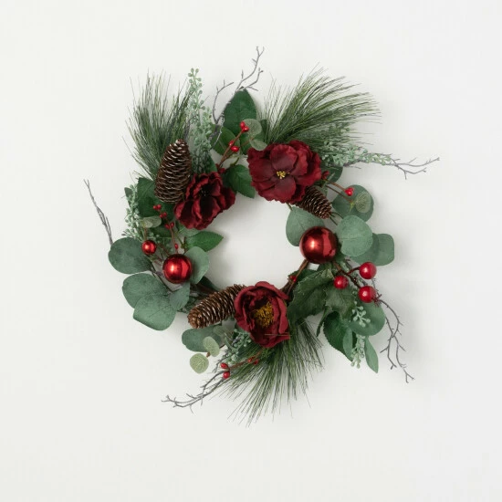 Add some beauty to your winter season with this exclusive 17″ eucalyptus and rose mini wreath. Designed with rich burgundy and soft greens, this mini wreath is perfect for any elegant home for the holiday. Over the last 52 years, Sullivans has become an industry leader in home decorations. Our brand is rooted in tradition while incorporating modernized trends to keep your home looking up to date with timeless style. Here at Sullivans, we pride ourselves on creating product designs focused on quality and value, ensuring that our customers have access to beautiful products at reasonable price points.