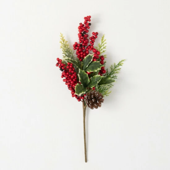 Add some fun this holiday season with a decorated holly and berry pick. With exclusively designed bright red berries, holly and pinecones, this is perfect for Christmas decorating. Over the last 52 years, Sullivans has become an industry leader in home decorations. Our brand is rooted in tradition while incorporating modernized trends to keep your home looking up to date with timeless style. Here at Sullivans, we pride ourselves on creating product designs focused on quality and value, ensuring that our customers have access to beautiful products at reasonable price points.