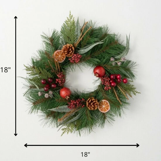 - Accentuate your space with this 18″ artificial pine, berry & fruit mini wreath