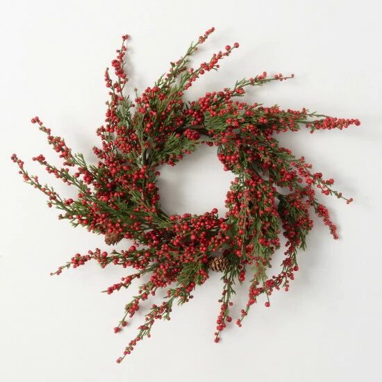 - Accentuate your space with this 20″ artificial cedar berry mini wreath