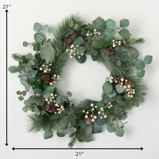 Bring indoors, the delightful charm of outdoor greenery, with the simple addition of this cozy wreath. Ashen-colored foliage and dusty eucalyptus leaves are paired with pinecones and snowy-white berries, to create a warm and welcoming look. Over the last 52 years, Sullivans has become an industry leader in home decorations. Our brand is rooted in tradition while incorporating modernized trends to keep your home looking up to date with timeless style. Here at Sullivans, we pride ourselves on creating product designs focused on quality and value, ensuring that our customers have access to beautiful products at reasonable price points.