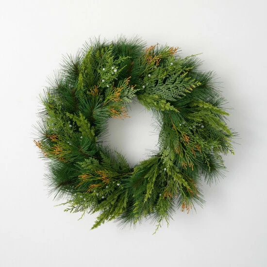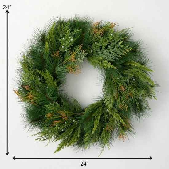 - Accentuate your space with this 24″ artificial mixed pine & juniper wreath