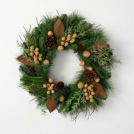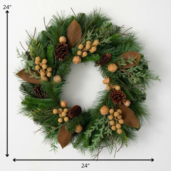 - Accentuate your space with this 24″ artificial pine, cone & nut wreath