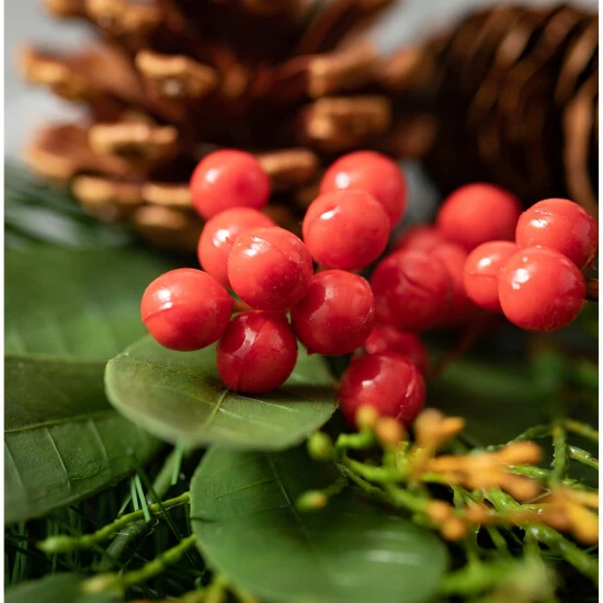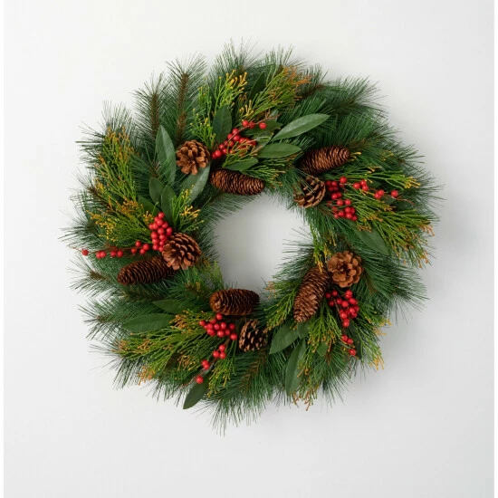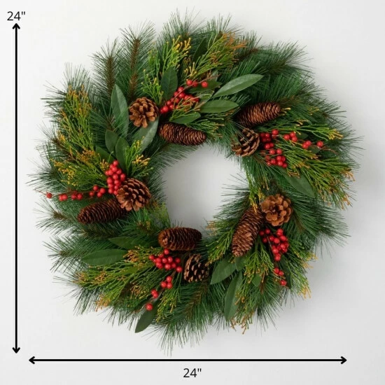 - Accentuate your space with this 24″ artificial rustic pine & berry wreath