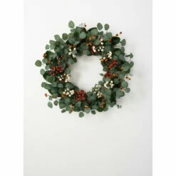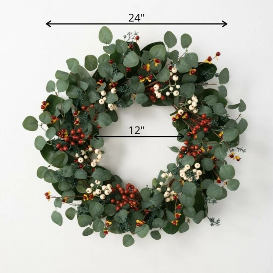 The perfect combination of easy-going eucalyptus paired with multi-colored berries make this a look that is on trend, yet will look great for years to come. This is one of those exceptional collections you can put up in the fall, and keep up all winter long.