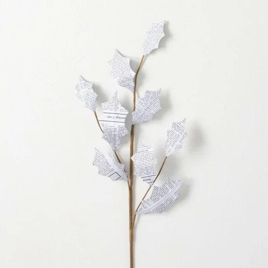 Add something unique to your holiday decor with this print holly leaf stem. With leaves made from newspaper print, this stem will stand out and make that bold holiday statement you’ve been looking for. Over the last 52 years, Sullivans has become an industry leader in home decorations. Our brand is rooted in tradition while incorporating modernized trends to keep your home looking up to date with timeless style. Here at Sullivans, we pride ourselves on creating product designs focused on quality and value, ensuring that our customers have access to beautiful products at reasonable price points.