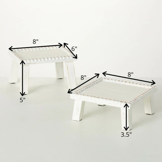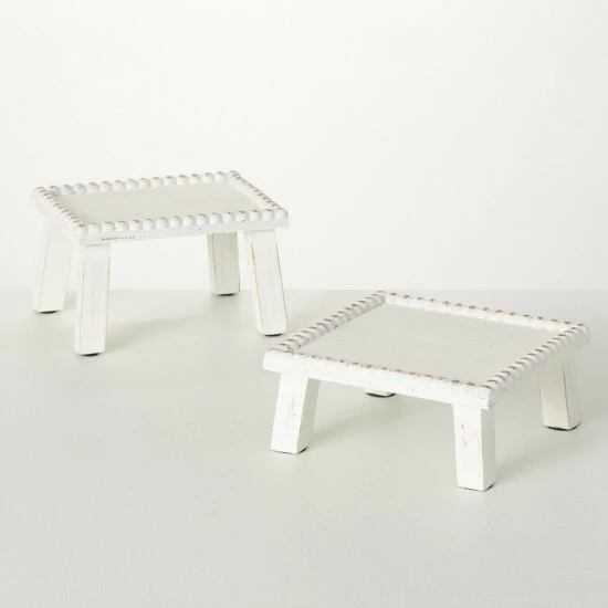 Distressed with a weathered, whitewashed finish and trimmed with a subtle beaded detail, this pair of square wooden risers serve as a design element, as well as a functional workpiece. Perfect to liven up any surface, this duo takes design to the next level. Over the last 55 years, Sullivans has become an industry leader in home decorations. Our brand is rooted in tradition while incorporating modernized trends to keep your home looking up to date with timeless style. Here at Sullivans, we pride ourselves on creating product designs focused on quality and value, ensuring that our customers have access to beautiful products at reasonable price points.