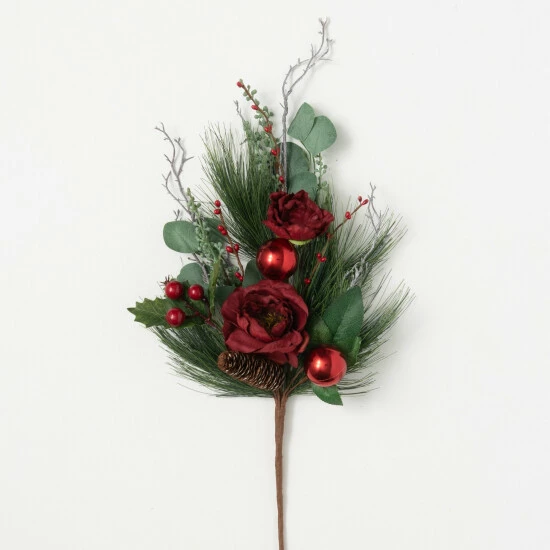 Add some beauty to your winter season with this exclusive eucalyptus and rose spray. Designed with rich burgundy and soft greens, this lovely spray is perfect for any elegant home for the holiday. Over the last 52 years, Sullivans has become an industry leader in home decorations. Our brand is rooted in tradition while incorporating modernized trends to keep your home looking up to date with timeless style. Here at Sullivans, we pride ourselves on creating product designs focused on quality and value, ensuring that our customers have access to beautiful products at reasonable price points.