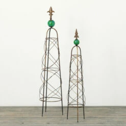This pair will add flair to any garden or pathway with its charming and unique design. These decorative metalworks are ideal for supporting climbing plants or serving as a one-of-a-kind display accent. The sturdy base is crafted with function in mind, while spiraling ornamental wire adds decorative appeal. Each is topped with a colorful sphere and finial topper. Over the last 55 years, Sullivans has become an industry leader in home decorations. Our brand is rooted in tradition while incorporating modernized trends to keep your home looking up to date with timeless style. Here at Sullivans, we pride ourselves on creating product designs focused on quality and value, ensuring that our customers have access to beautiful products at reasonable price points.