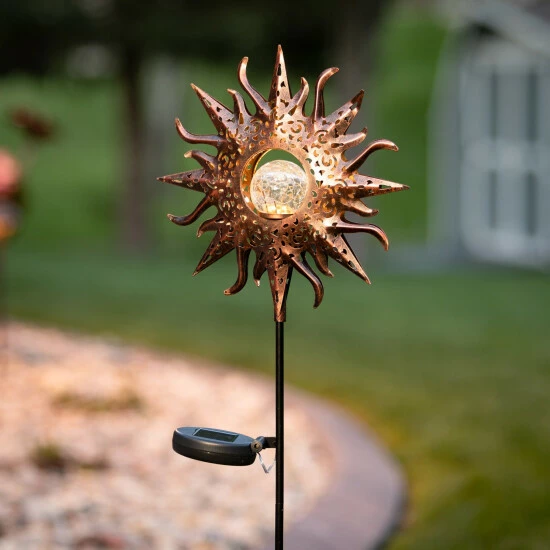 - Illuminate your outdoor space with this metal copper stake solar light.