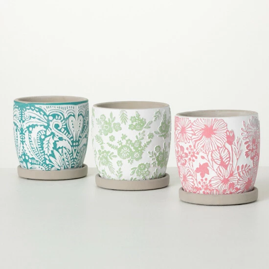 Vibrant, colorful, and textured with a delightful design, this set of three mini cement planters are ideal for dressing up the tabletop or windowsill. Ideal for planting herbs in the kitchen, this trio will brighten up any area with personality and charm. Over the last 55 years, Sullivans has become an industry leader in home decorations. Our brand is rooted in tradition while incorporating modernized trends to keep your home looking up to date with timeless style. Here at Sullivans, we pride ourselves on creating product designs focused on quality and value, ensuring that our customers have access to beautiful products at reasonable price points.