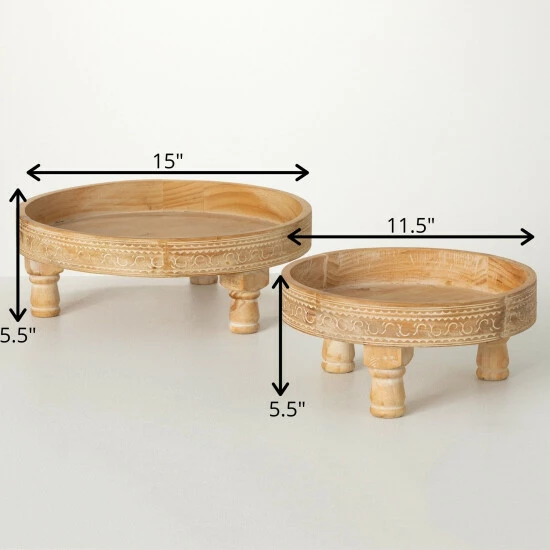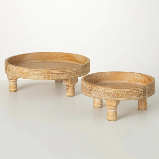 Take your tabletop display to new heights with this pair of warm brown wooden risers. Elevating even the smallest accessories and accented with feet for added stature, the chiseled look adds to the eclectic charm this pair provides. Over the last 55 years, Sullivans has become an industry leader in home decorations. Our brand is rooted in tradition while incorporating modernized trends to keep your home looking up to date with timeless style. Here at Sullivans, we pride ourselves on creating product designs focused on quality and value, ensuring that our customers have access to beautiful products at reasonable price points.