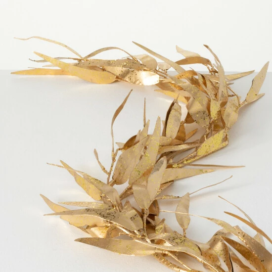 - This artificial gold eucalyptus blade garland is the perfect addition to your holiday mantel