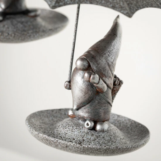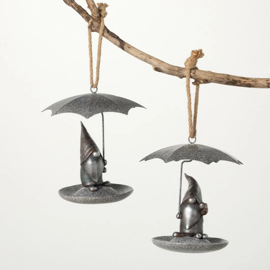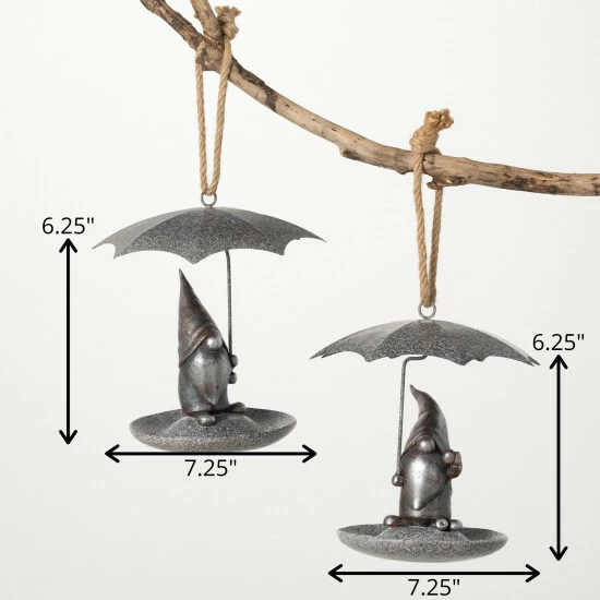 Prepared for a rainy day, these umbrella-covered gnome sculptured bird feeders add a whimsical touch to any garden decor. Available as pair, they are highlighted with stone-gray finish to add classic style to their adorable appeal. Hang them up for double-duty, feeding your feathered friends and satisfying your funny bone. Over the last 55 years, Sullivans has become an industry leader in home decorations. Our brand is rooted in tradition while incorporating modernized trends to keep your home looking up to date with timeless style. Here at Sullivans, we pride ourselves on creating product designs focused on quality and value, ensuring that our customers have access to beautiful products at reasonable price points.