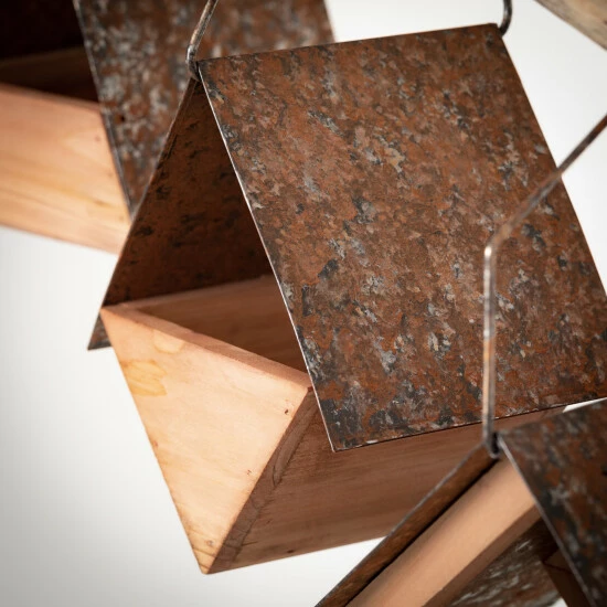 Keep your garden in tip-top style with this trio of angled bird feeders. Geometric and modern, these beauties serve double-duty by adding an element of style to your outdoor living space, while providing a haven for birds that visit your home. The faux-finished copper rooftops really add to the chic appeal of this set. Over the last 55 years, Sullivans has become an industry leader in home decorations. Our brand is rooted in tradition while incorporating modernized trends to keep your home looking up to date with timeless style. Here at Sullivans, we pride ourselves on creating product designs focused on quality and value, ensuring that our customers have access to beautiful products at reasonable price points.