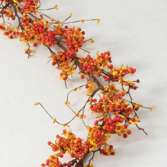 This bittersweet collection beckons guests to your home at harvest time. Foliage in the colors characteristic of fall look great for the season. Simple, yet stylish, there is no mistaking the autumn aura of this piece.
