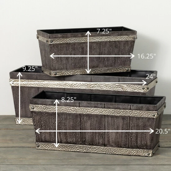 This trio of rectangular garden planters is great for your garden, porch, or indoor space to add rustic charm. Wide and spacious for planting all of your favorites, this set comes equipped with a drain whole in the base of each with a removable rubber stopper-plug. Simple and charming, they instantly create a warm and cozy feel. Over the last 55 years, Sullivans has become an industry leader in home decorations. Our brand is rooted in tradition while incorporating modernized trends to keep your home looking up to date with timeless style. Here at Sullivans, we pride ourselves on creating product designs focused on quality and value, ensuring that our customers have access to beautiful products at reasonable price points.