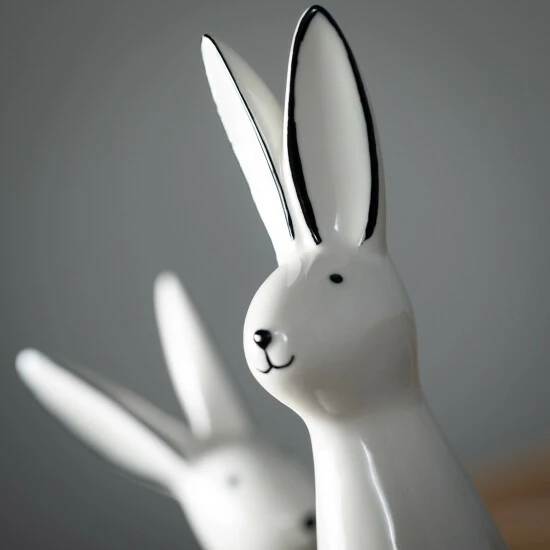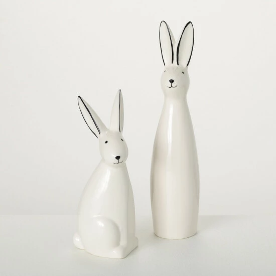Gleaming in bright white porcelain with modern ebony highlighted features, your shelves will really hop with style this spring. Simple and sweet with an updated form, one bunny figural is standing tall and the other resting on his haunches. Ideal for giving your decor an updated look. Over the last 55 years, Sullivans has become an industry leader in home decorations. Our brand is rooted in tradition while incorporating modernized trends to keep your home looking up to date with timeless style. Here at Sullivans, we pride ourselves on creating product designs focused on quality and value, ensuring that our customers have access to beautiful products at reasonable price points.