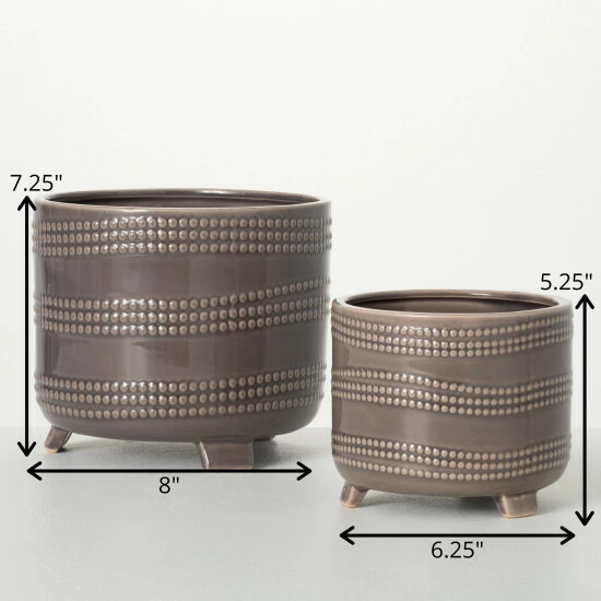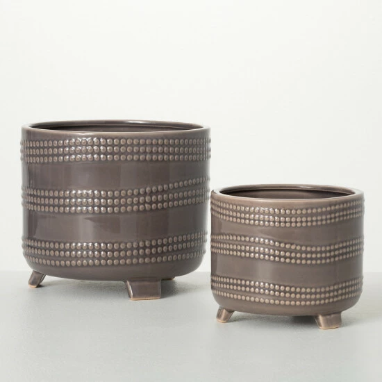 Doubling as an eclectic tabletop accent, this pair of footed planters flaunt a unique textured pattern surrounding the exterior that lend a perfect dose of personality. Over the last 55 years, Sullivans has become an industry leader in home decorations. Our brand is rooted in tradition while incorporating modernized trends to keep your home looking up to date with timeless style. Here at Sullivans, we pride ourselves on creating product designs focused on quality and value, ensuring that our customers have access to beautiful products at reasonable price points.