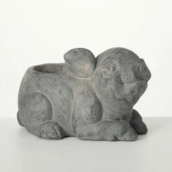 - Add some whimsical fun to your outdoor space with this charcoal piglet planter.