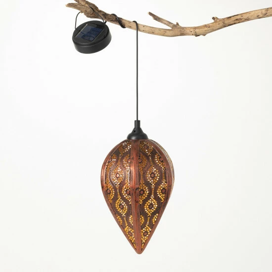 - Illuminate your outdoor space with this metal copper hanging solar light.