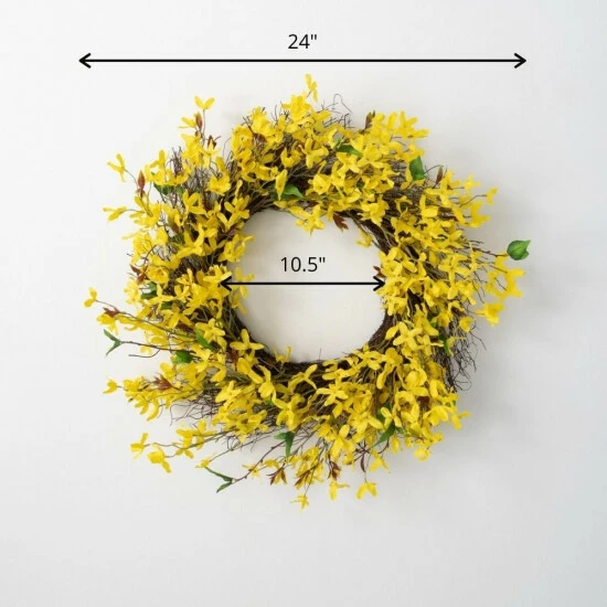 Bursting with bright yellow flowering forsythia, this 24″ wreath makes a cheerful addition to any space. With its lifelike appearance and authentic styling, you’ll do a double-take when you see this collection. Over the last 52 years, Sullivans has become an industry leader in home decorations. Our brand is rooted in tradition while incorporating modernized trends to keep your home looking up to date with timeless style. Here at Sullivans, we pride ourselves on creating product designs focused on quality and value, ensuring that our customers have access to beautiful products at reasonable price points.