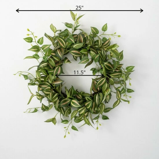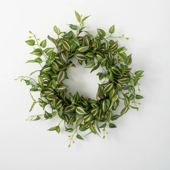 This collection of variegated spiderwort foliage is also commonly known in the plant world as the Wandering Jew This easy-going wreath offers unique textures that are perfect for decorating. Over the last 52 years, Sullivans has become an industry leader in home decorations. Our brand is rooted in tradition while incorporating modernized trends to keep your home looking up to date with timeless style. Here at Sullivans, we pride ourselves on creating product designs focused on quality and value, ensuring that our customers have access to beautiful products at reasonable price points.