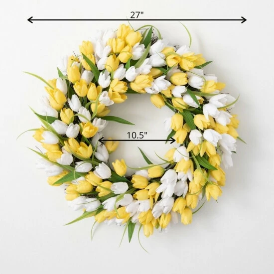 This collection is made from bright yellow tulips clustered together in a stylish fashion. This maneuverable wreath is perfect for spring and summer decorating. Over the last 52 years, Sullivans has become an industry leader in home decorations. Our brand is rooted in tradition while incorporating modernized trends to keep your home looking up to date with timeless style. Here at Sullivans, we pride ourselves on creating product designs focused on quality and value, ensuring that our customers have access to beautiful products at reasonable price points.
