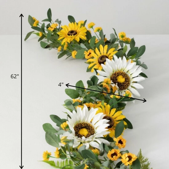 This 62″ long sunflower garland is a cheerful combination of white and yellow sunflowers accented with popular black and white buffalo plaid ribbon. Casual yet sophisticated it fits comfortably in almost any home. Over the last 52 years, Sullivans has become an industry leader in home decorations. Our brand is rooted in tradition while incorporating modernized trends to keep your home looking up to date with timeless style. Here at Sullivans, we pride ourselves on creating product designs focused on quality and value, ensuring that our customers have access to beautiful products at reasonable price points.