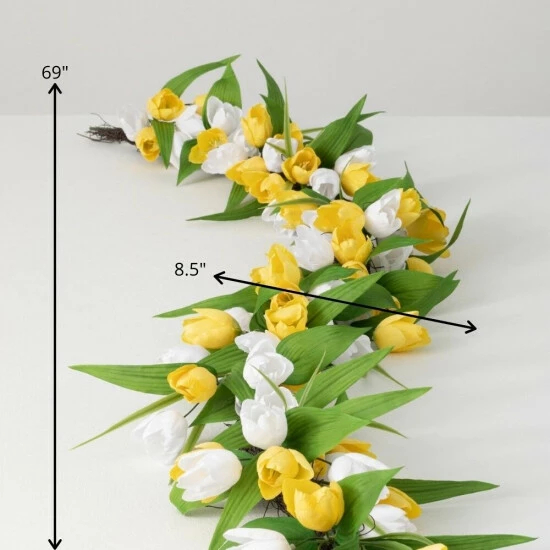 This collection is made from bright yellow tulips clustered together in a stylish fashion. This 69″ garland is perfect for spring and summer decorating. Over the last 52 years, Sullivans has become an industry leader in home decorations. Our brand is rooted in tradition while incorporating modernized trends to keep your home looking up to date with timeless style. Here at Sullivans, we pride ourselves on creating product designs focused on quality and value, ensuring that our customers have access to beautiful products at reasonable price points.