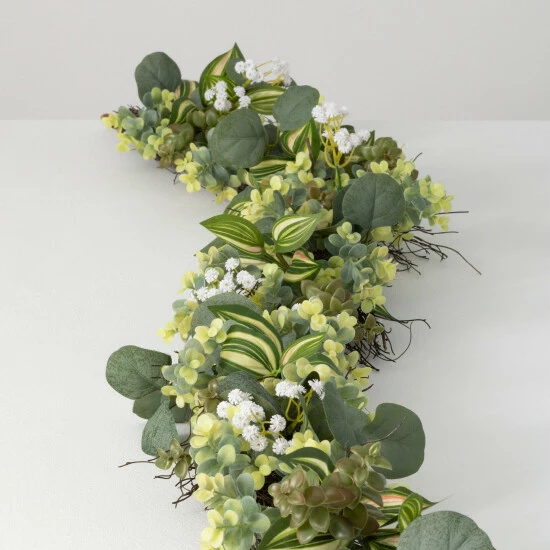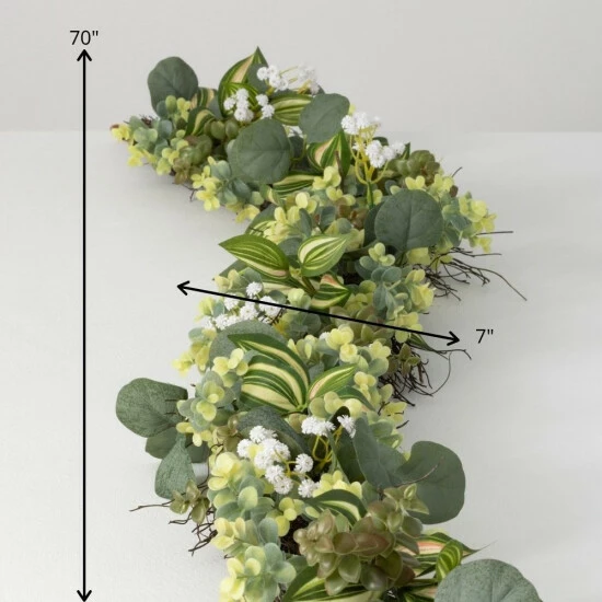 This collection is a combination of foliage from the wandering Jew, Italian ruscus and eucalyptus. This unique greenery mix in a 70″ long garland, creates a lush look any time of year. Over the last 52 years, Sullivans has become an industry leader in home decorations. Our brand is rooted in tradition while incorporating modernized trends to keep your home looking up to date with timeless style. Here at Sullivans, we pride ourselves on creating product designs focused on quality and value, ensuring that our customers have access to beautiful products at reasonable price points.