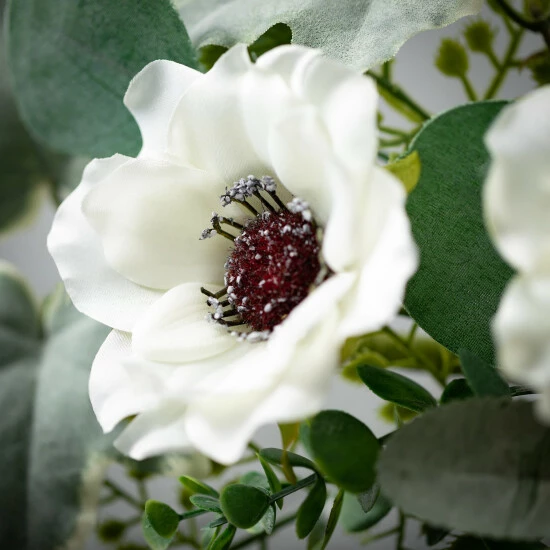 - Hang this artificial anemone wreath on your front door for instant curb appeal
