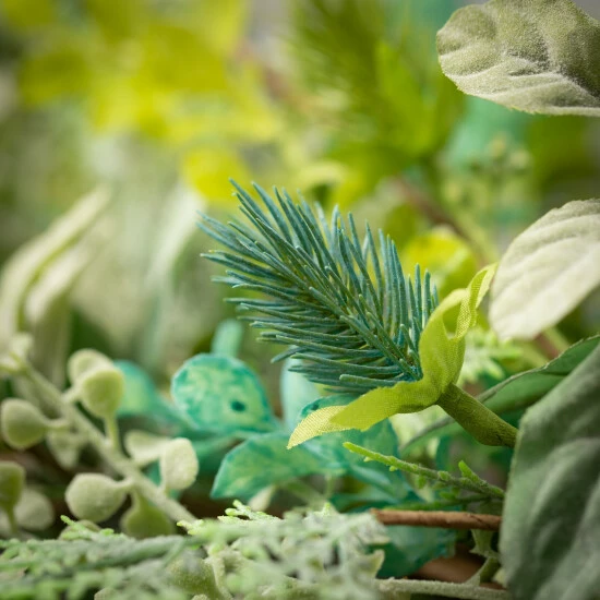 - Hang this artificial leafy mixed botanical wreath on your front door for instant curb appeal