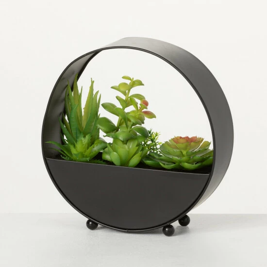 Add some life to your personal space with this beautiful succulent arrangement. With lush, natural greens and a convenient matte black planter, these plants are perfect for any surface in your home. Over the last 52 years, Sullivans has become an industry leader in home decorations. Our brand is rooted in tradition while incorporating modernized trends to keep your home looking up to date with timeless style. Here at Sullivans, we pride ourselves on creating product designs focused on quality and value, ensuring that our customers have access to beautiful products at reasonable price points.