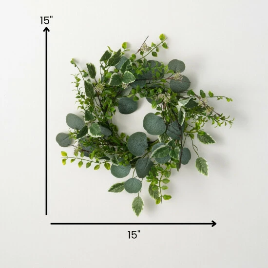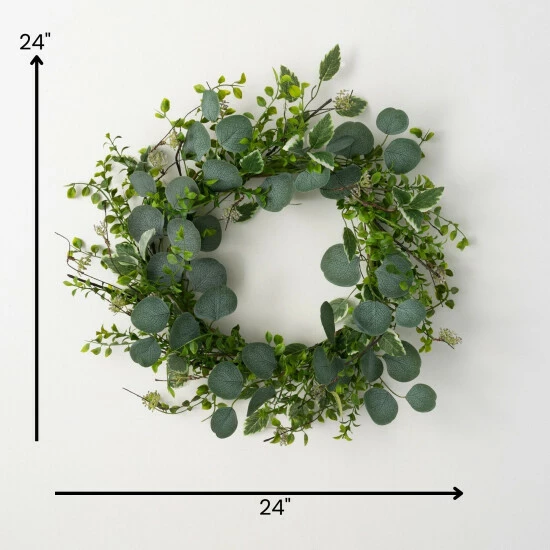 - Hang this artificial variegated foliage mix wreath on your front door for instant curb appeal