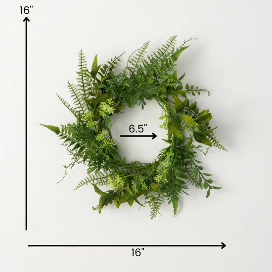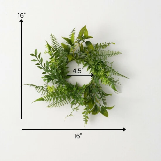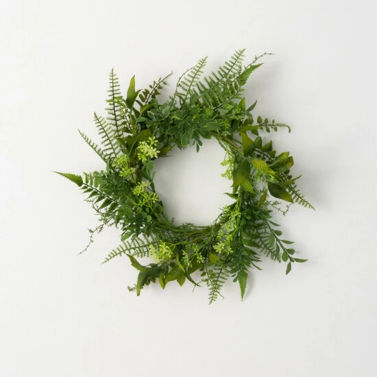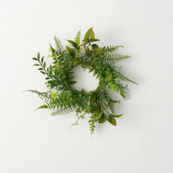 - Hang this artificial verdant leafy foliage mini wreath on your front door for instant curb appeal