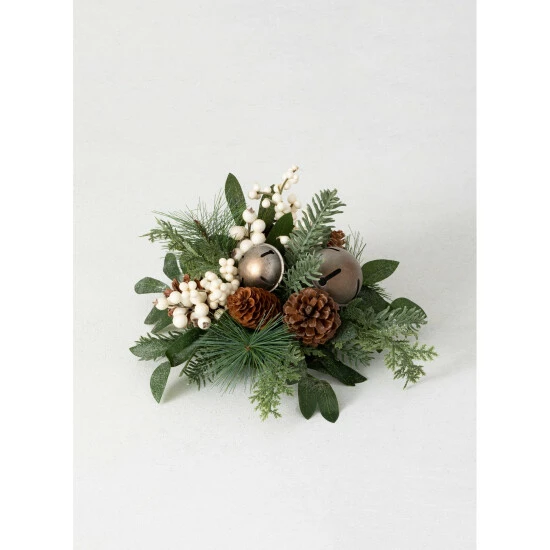 Add a little jingle to the holiday centerpiece with this unique and charming collection. Easy-going style mixed with a plethora of mixed greens, berries and cones, is highlighted only by the oversized jingle bells that complete the look!