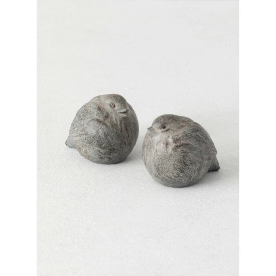 Another great piece that looks like cast stone; these polyresin birds are lightweight and easy to decorate with. Each figurine measures nearly 3″ around.