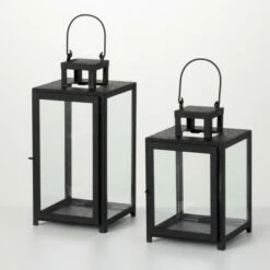 - Each lantern measures 6.75″L x 7.25″W x 14″H; 6.75″L x 7.25″W x 11″H