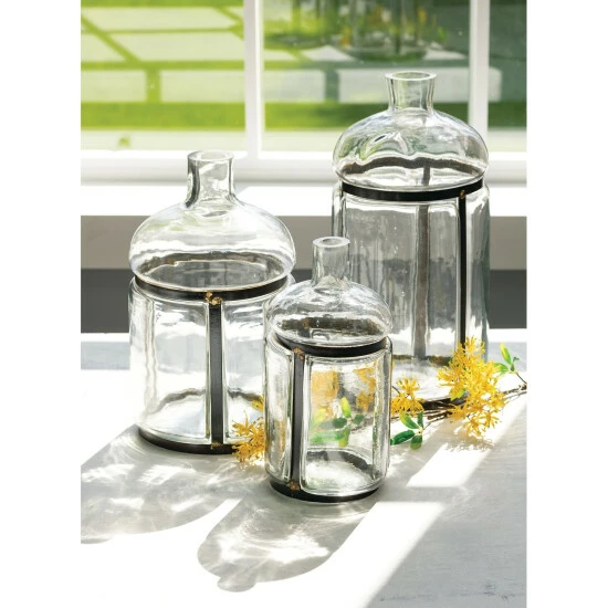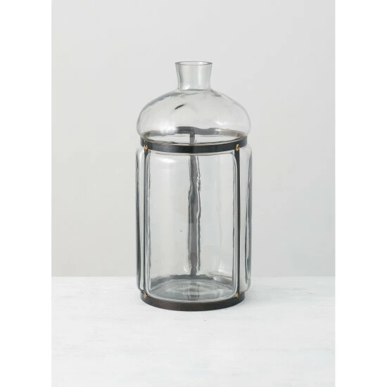 It all starts with an empty canvas – this clear-glass bottle is accented by a fitted metal frame. Perfect as a stand-alone accent or filled with a few flowers for display. The simplicity shapes its splendor.