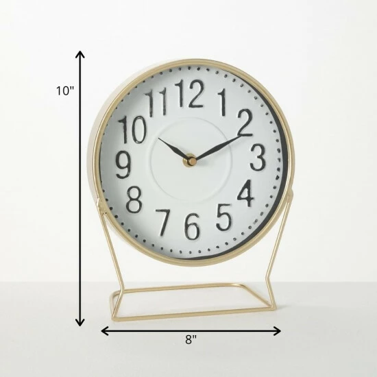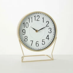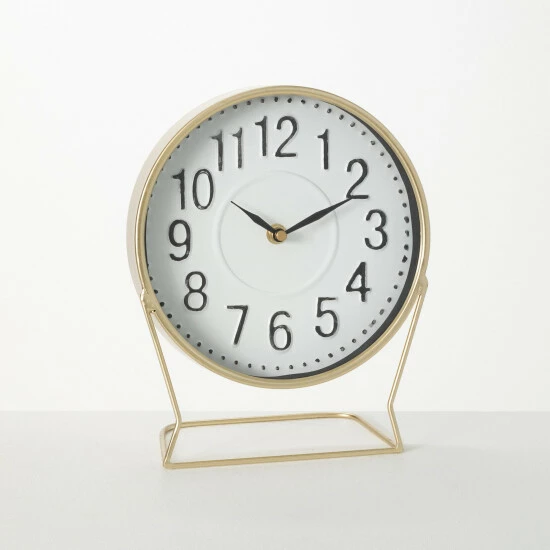 The simple black hands mark the passing of time on the plain white face of this desktop clock. Standing on a brushed brass-colored metal frame, this piece measures 8″ x 10″ and works perfectly on any surface. Over the last 52 years, Sullivans has become an industry leader in home decorations. Our brand is rooted in tradition while incorporating modernized trends to keep your home looking up to date with timeless style. Here at Sullivans, we pride ourselves on creating product designs focused on quality and value, ensuring that our customers have access to beautiful products at reasonable price points.
